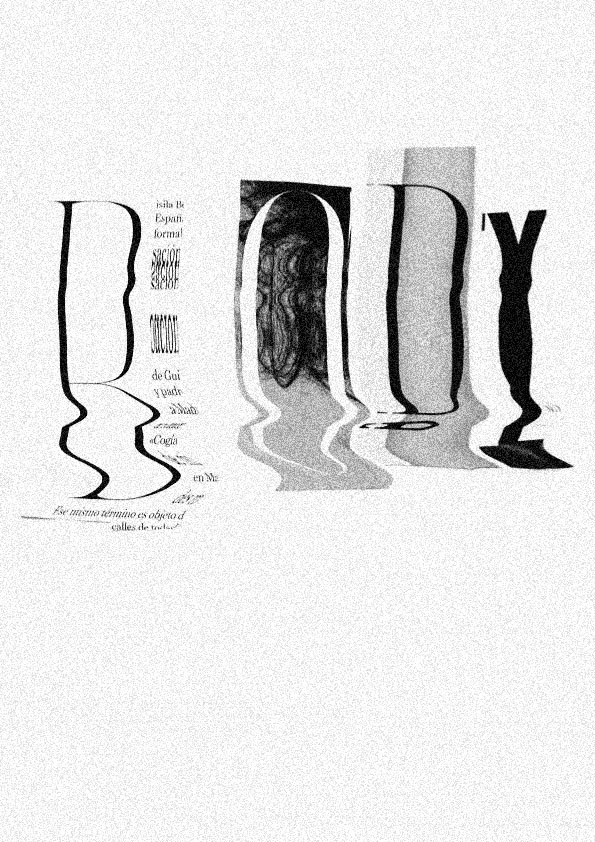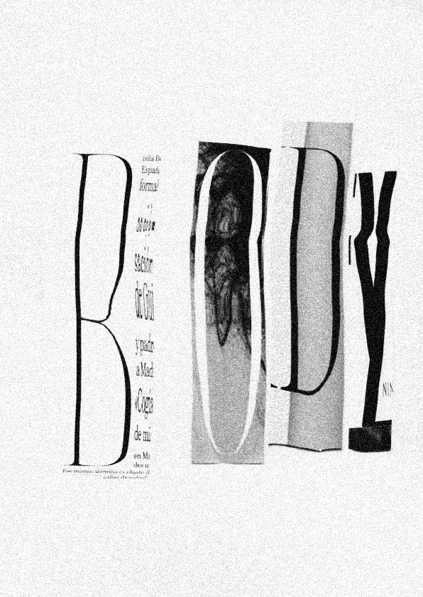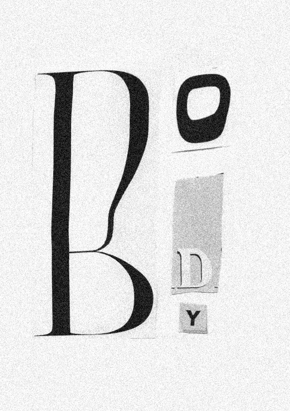 The body project is an experimentation with typography and the scanner. The project brief consisted of creating a poster made up of the different letters that make up the word body, and scanning it, identifying it and working according to the concept that was wanted to be conveyed.
